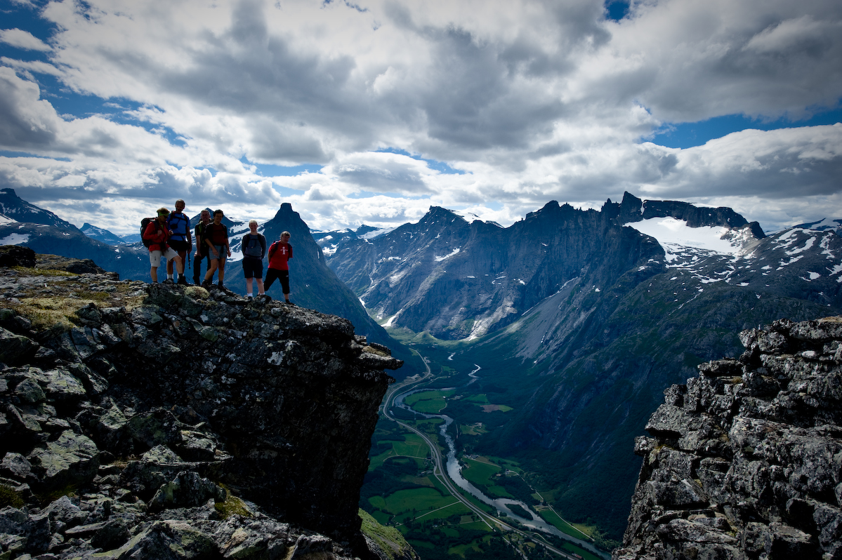 One of the most beautiful hikes in the world, with views to Trollveggen, Romsdalshorn, and the Rauma River far below.
